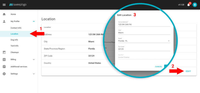You can update your service address through the Location tab. When you request an address change, it will be sent to our office for review and approval.